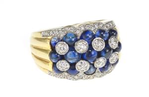 3386. Bague pavée de saphirs taille cabochon alternés de motifs pavés...