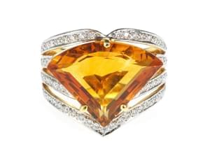 3389. *Bague sertie d'une citrine taille triangulaire fantaisie épaulé...