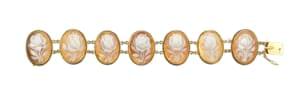 3392. Bracelet composé de sept médaillons retenant des camées sculptés...