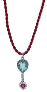 3394. *Pendentif serti d'un quartz bleu vert taille poire retenant un...