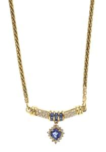 3429. Collier retenant des pendeloques serties de saphirs et saphirs d...