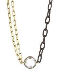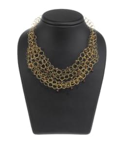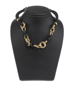3410. Collier design à maille ronde et ovale alterné de motifs en bois...