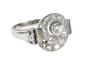 3414. Bague centrée d'un diamant taille ancienne (env. 0,35 ct) entour...