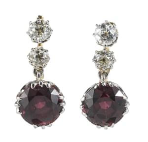 3415. Paire de boucles d'oreilles retenant des rodolites (env. 6 ct) r...