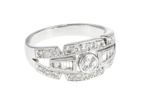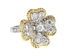 3416. Bague centrée d'un diamant formant un trèfle à quatre feuilles p...