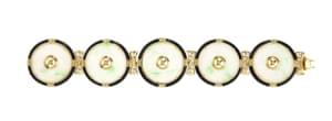 3421. Bracelet composé de cinq disques de jade sculptés entourés d'ony...
