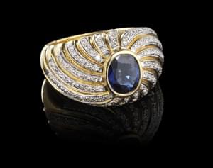 3423. *Bague sertie d'un saphir taille ovale (env. 1 ct) entouré de li...