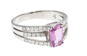 3425. *Bague sertie d'un saphir rose taille émeraude (env. 0,8 ct) épa...