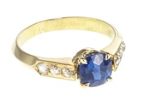 3427. Bague sertie d'un saphir taille coussin (env.1,2 ct) probablemen...