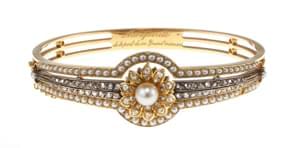 3436. Bracelet jonc ancien centré d'une perle (D env. 6 mm) entourée d...
