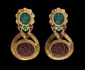 3442. Clips d'oreilles sertis d'intailles en agate verte et cornaline