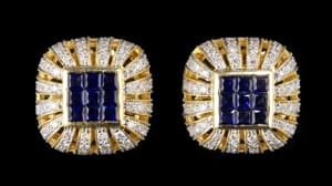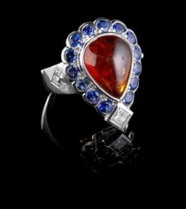 Retenant un motif central serti d'un saphir taillé en blason ent...