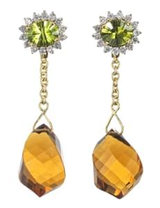3454. *Pendants d'oreilles sertis de péridots entourés de diamants et...