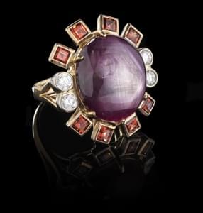 3456. *Bague sertie d'un rubis étoilé taille cabochon ovale (env. 30 c...