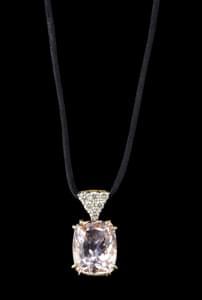 3458. *Pendentif serti d'une morganite taille coussin (8,65 ct) retenu...