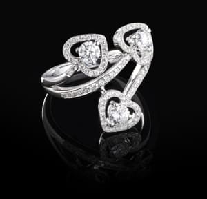 3459. *Bague ornée de trois cœurs ajourés sertis de diamants sur une m...
