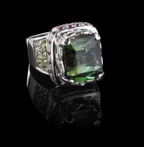 3480. *Bague sertie d'une tourmaline taille rectangle (env. 12,2 ct) e...
