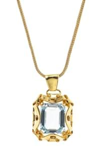 3469. Pendentif stylisé serti d'une topaze bleue taille émeraude (env....