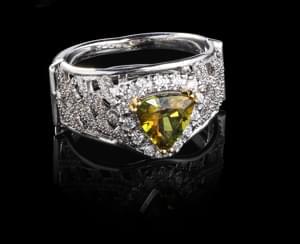 3472. *Bague sertie d'un sphène taille troïda color change (env. 1,16...