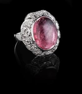 3473. *Bague sertie d'une tourmaline rose taille cabochon (env. 14 ct)...