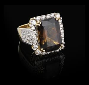 Un quartz fumé taille rectangle 78,70 ct, une citrine taille cab...