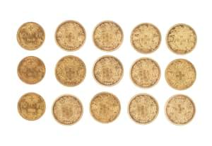 Datés de 1912, 1922, 1947 et 1980 et trois pièces de 10 francs H...