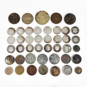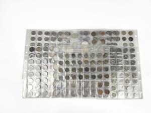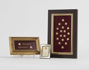 3624. Collection de trois cadres contenant 20 pièces et un timbre en o...