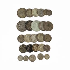 3630. Grand lot d’environ 100 pièces, la plupart en argent