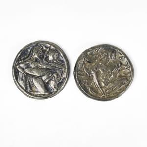3634. Deux grandes reproductions de monnaies grecques du IVe et Ve s