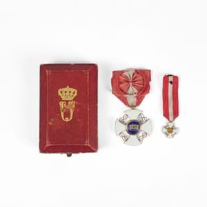 3636. Deux croix d’officier de l’Ordre de la Couronne d’Italie en or e...