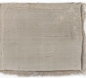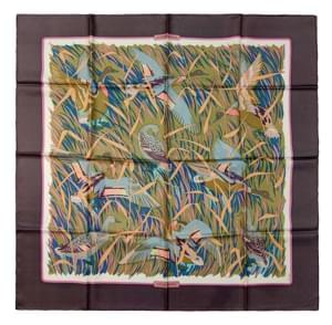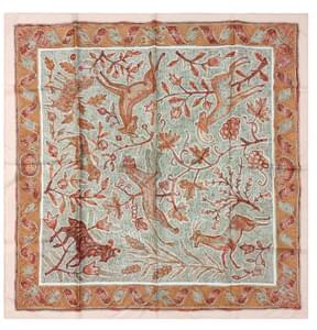 A décor végétal sur fond ivoire et bordure beige vert, soie, 90x...