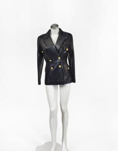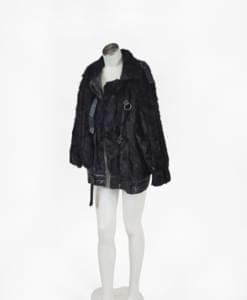 Fourrure de vison brun et cuir noir, parements de cuir, fermetur...