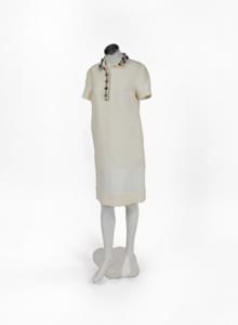 Coton et soie blanc, col brodé de pierres synthétiques, taille 4...