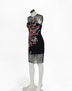 Dentelle et crêpe de soie noire, broderies à motif de fleurs sty...