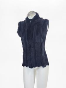 Fourrure de lapin noire, laine et acrylique, fermeture éclair, t...