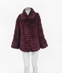 Fourrure de lapin bordeaux, intérieur en soie bordeaux, fermetur...