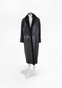 Cuir marron foncé, doublure et col en vison brun, intérieur en s...
