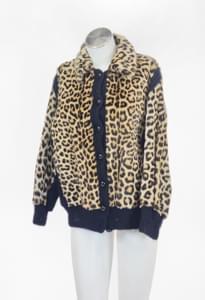 Fourrure de panthère, laine tricotée noire, intérieur en soie no...