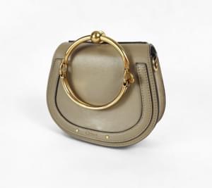 Cuir lisse taupe, garnitures dorées, poignée supérieure, rabat a...
