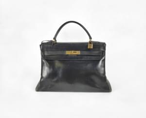 Cuir lisse noir, garniture en métal doré, 23x35x13 cm