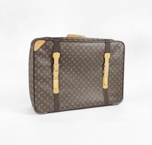 Cuir naturel et toile monogrammée, trois compartiments, cadenas,...