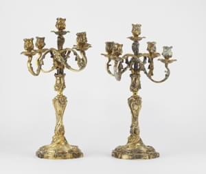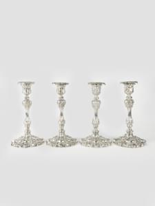 3732. Suite de 4 bougeoirs victoriens à décor de feuilles
