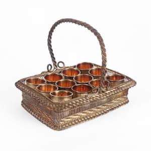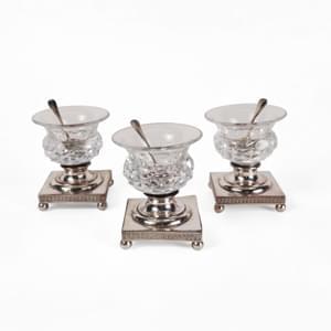 3760. Confiturier d'époque Empire à anse de putti portant des corbeill...