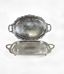 3748. Deux plateaux de service à motif gravé de rinceaux