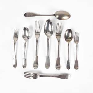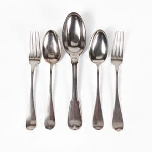 3756. 6 fourchettes et 6 cuillères armoriées Couvreu de Deckersberg