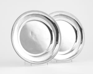 3763. Paire de plats d'époque Empire à bordure de palmettes et monogra...