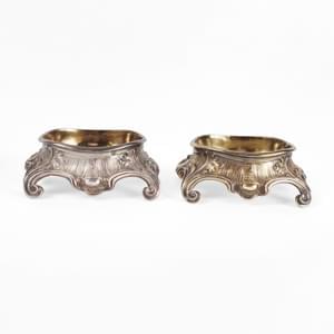 St-Médar, métal argenté, comprenant: une grande, une petite timb...