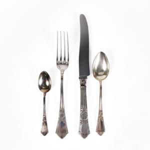Jezler, argent 800, comprenant: 10 fourchettes, 9 couteaux et 9...