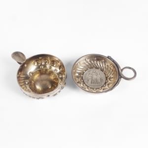 3796. Deux taste-vin à motif de godrons, l'un enchâssant une pièce de...