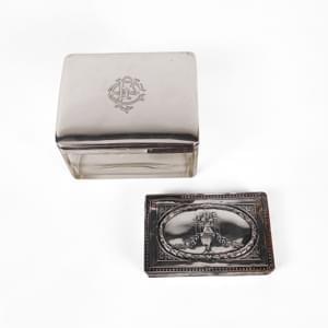 3799. Deux boîtes à décor de monogramme et vase néoclassique